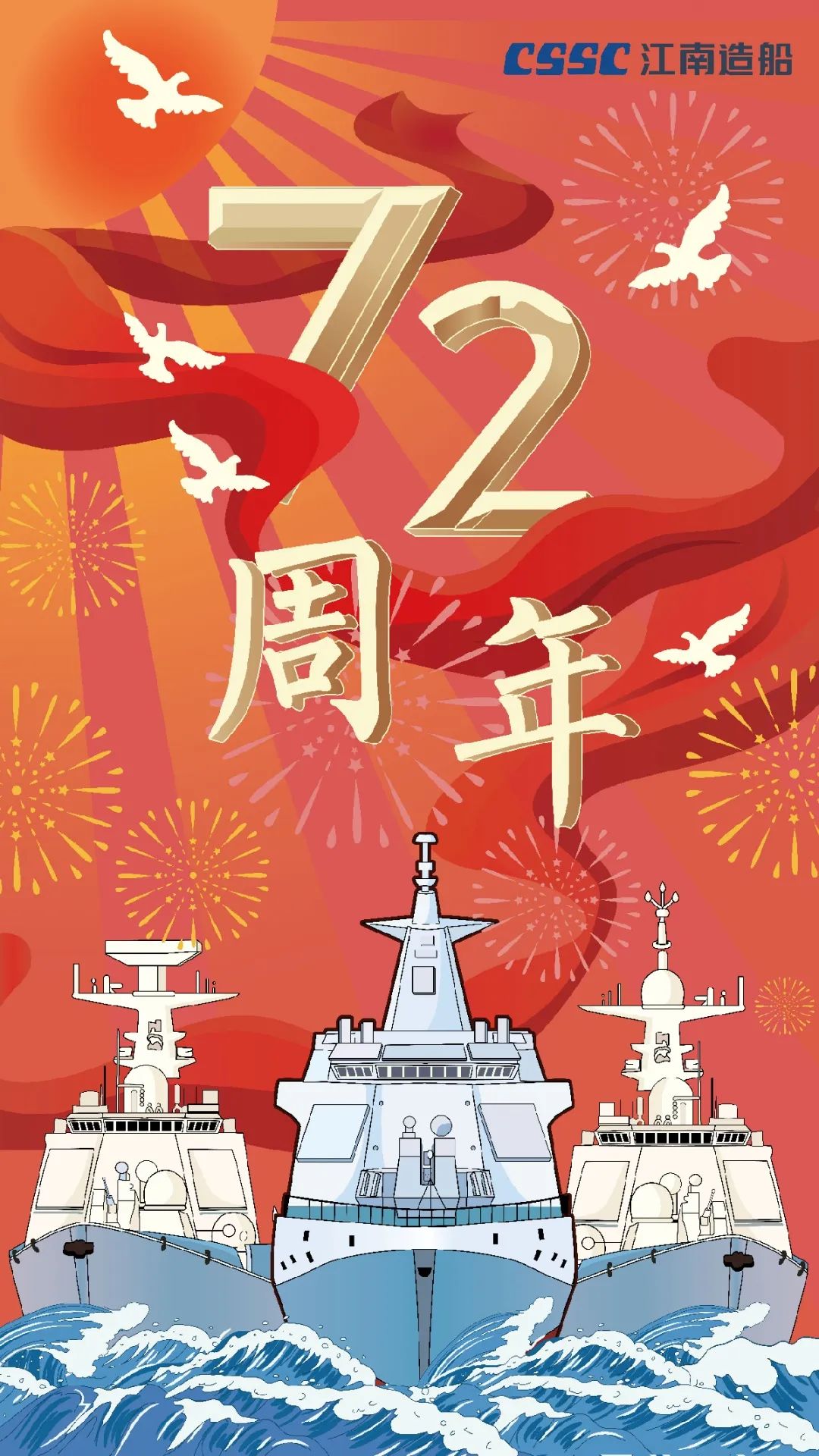 今天,我們迎來新中國72周年華誕。作為我國海軍裝備建設(shè)的主力軍,中國船舶大船集團將不忘初心,牢記使命,堅定貫徹海洋強國、制造強國、科技強國國家戰(zhàn)略,聚焦主責(zé)主業(yè)、聚力興裝強軍,為實現(xiàn)中華民族偉大復(fù)興的中國夢而不懈奮斗。