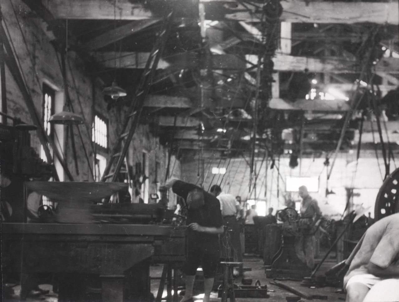 1934年武漢,上世紀(jì)30年代,武昌造船成立之初,工人們以手工作業(yè)“敲敲打打”形式開展修造船業(yè)務(wù)。修造的船只大多為100~300噸、鋼肋骨與木殼結(jié)構(gòu),僅有少量是鋼鉚接船體。建造的船只只能在長江上航行跑跑運(yùn)輸。為了生存和救國,船廠還建造一些農(nóng)用機(jī)械器具、槍支,以輔助民生、支援抗日。