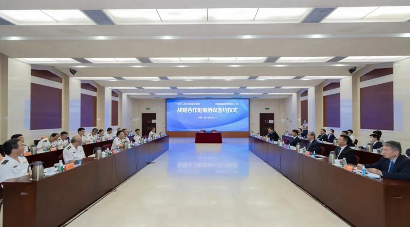 7月15日,中國船舶集團有限公司與交通運輸部海事局在京簽署戰(zhàn)略合作框架協(xié)議。雙方將在海洋裝備制造業(yè)和海事監(jiān)管領(lǐng)域加強戰(zhàn)略互聯(lián)、政策互通、技術(shù)標(biāo)準(zhǔn)對接,共同加快建設(shè)交通強國、海洋強國。中國船舶集團黨組書記、董事長雷凡培,黨組成員、副總經(jīng)理杜剛,交通運輸部海事局黨組書記、局長曹德勝,一級巡視員孫有恒出席簽約儀式。中國船舶集團黨組成員、副總經(jīng)理孫偉,交通運輸部海事局黨組成員、副局長楊新宅分別代表雙方在協(xié)議上簽字。