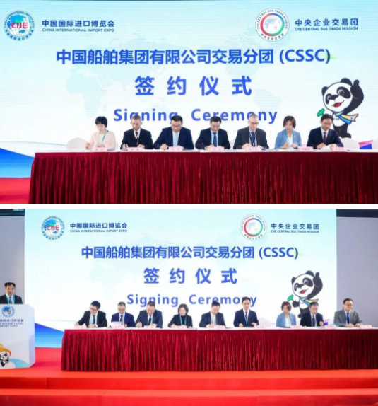 11月6日上午,中國(guó)船舶集團(tuán)舉行第三屆進(jìn)博會(huì)國(guó)資委中央企業(yè)交易團(tuán)集中簽約儀式,中國(guó)船舶集團(tuán)所屬7家企業(yè)與19家合作商進(jìn)行了23個(gè)項(xiàng)目簽約,簽約總金額共計(jì)1.14億美元。中國(guó)船舶集團(tuán)黨組成員、副總經(jīng)理錢(qián)建平參加簽約儀式。