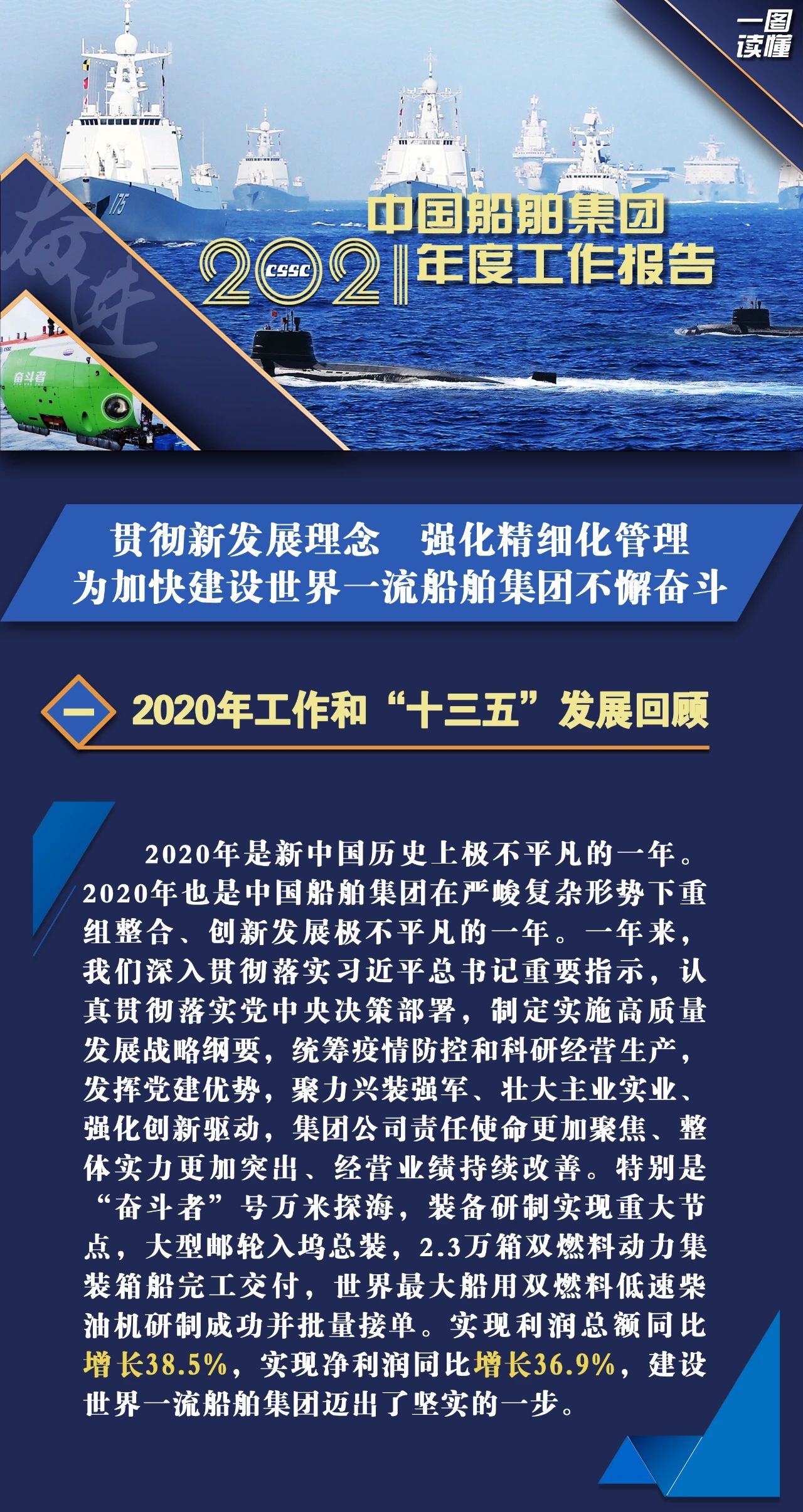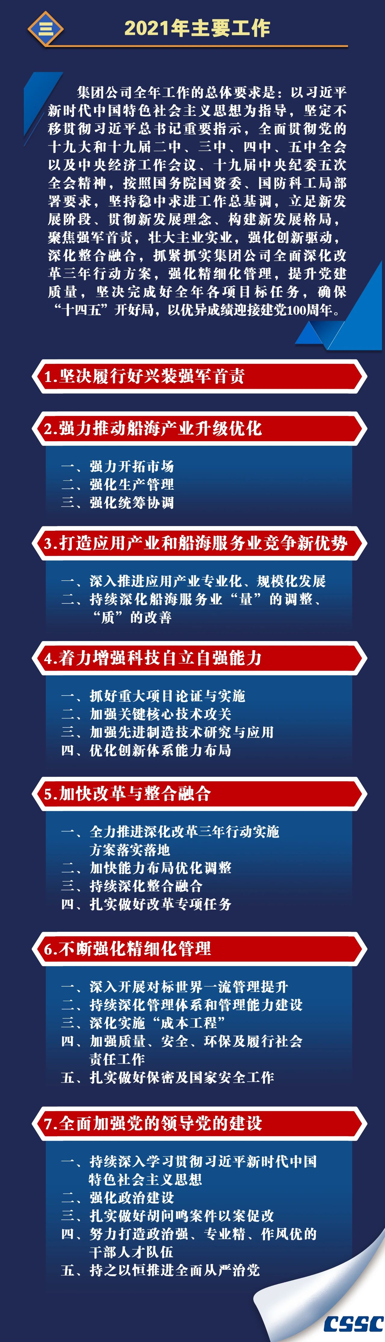 1月27日,在中國船舶集團有限公司2021年度工作會議上,中國船舶集團黨組書記、董事長雷凡培作了題為《貫徹新發(fā)展理念 強化精細化管理 為加快建設(shè)世界一流船舶集團不懈奮斗》的工作報告。