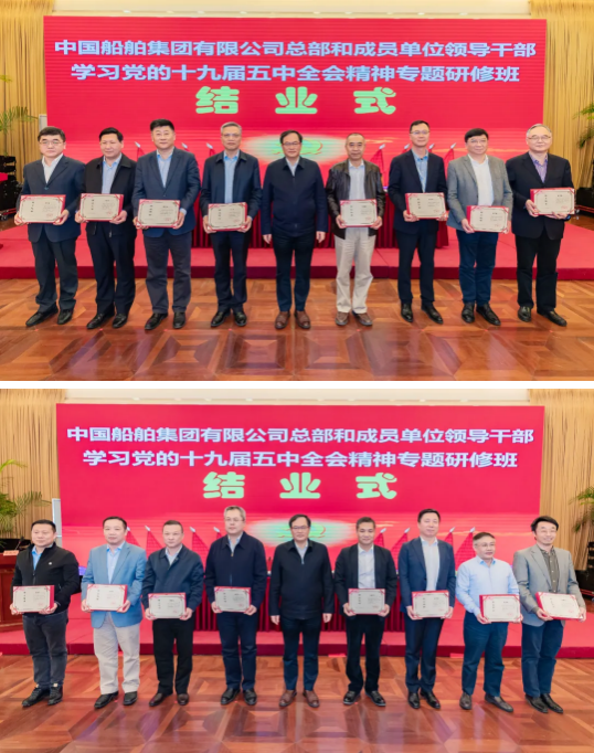 4月23日,中國船舶集團(tuán)有限公司總部和成員單位領(lǐng)導(dǎo)干部學(xué)習(xí)黨的十九屆五中全會(huì)精神和黨史學(xué)習(xí)教育專題研修班圓滿結(jié)業(yè)。培訓(xùn)期間,中國船舶集團(tuán)黨組書記、董事長雷凡培以《深入貫徹落實(shí)習(xí)近平總書記重要指示批示精神 努力加快建設(shè)世界一流船舶集團(tuán)》為題給全體學(xué)員們講授了第一課,中國船舶集團(tuán)黨組副書記、總經(jīng)理?xiàng)罱鸪桑h組成員、副總經(jīng)理孫偉、盛紀(jì)綱以及相關(guān)部門負(fù)責(zé)人先后出席各期結(jié)業(yè)式并聽取了學(xué)員們的學(xué)習(xí)匯報(bào)。