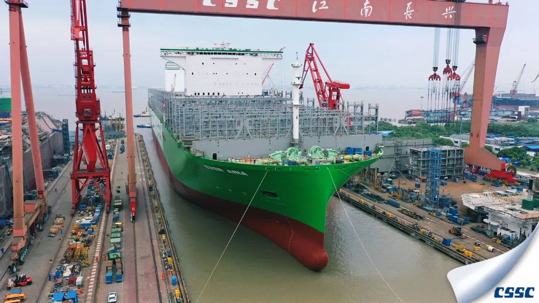 新船出塢前,造船工人對船舶外貌進(jìn)行補(bǔ)漆,以最靚麗的姿態(tài)迎接船舶出塢。