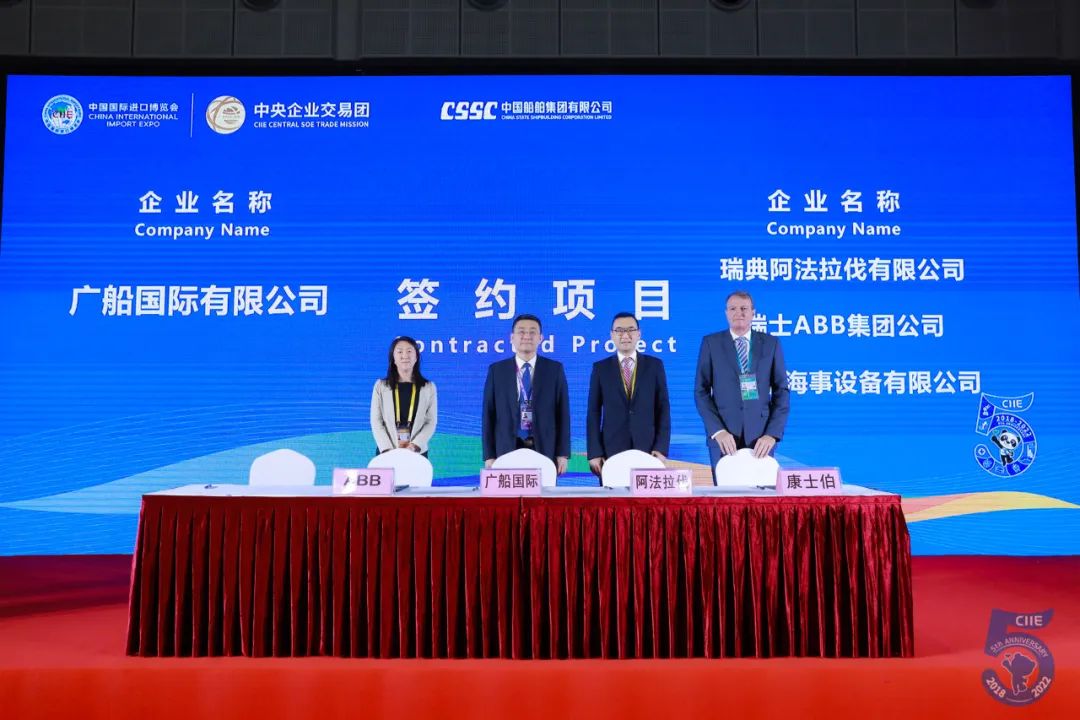 第五屆進博會期間,中國船舶集團旗下8家企業與18家國際合作伙伴先后進行21個項目的集中簽約,累計總金額達4.5億美元,同比增長205.5%。項目涉及柴油機組、發電機組、船用吊機、通導系統、電力推進系統、數字化網絡設備、LNG供氣系統、殷瓦鋼、再液化裝置等船舶建造領域的各類重要配套設備,為國際交易市場和全球供應鏈的日益繁榮貢獻中國船舶力量。