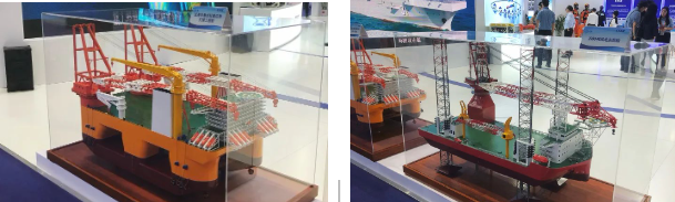 在中國(guó)船舶集團(tuán)展區(qū),排開(kāi)了60米級(jí)綜合應(yīng)急指揮船、5000噸大型巡航救助船“海巡03”號(hào)、大型巡航救助船“海巡06”號(hào)、30米鋁合金高速巡邏船、遠(yuǎn)海半潛式起重應(yīng)急打撈工程船、4000馬力動(dòng)力守護(hù)船“海洋石油540”號(hào)、10萬(wàn)噸級(jí)半潛船“新光華”號(hào)、深潛水工作母船“深潛”號(hào)、2000噸風(fēng)電安裝船、16V32/40發(fā)電機(jī)組等裝備模型,小型觀察級(jí)ROV“智光”號(hào)、AUV-180、應(yīng)急消防無(wú)人航行器、新型輕潛水裝具、智能救生器、正壓式消防空氣呼吸器、正壓式消防氧氣呼吸器、逃生呼吸器等產(chǎn)品更是展出了實(shí)物。
