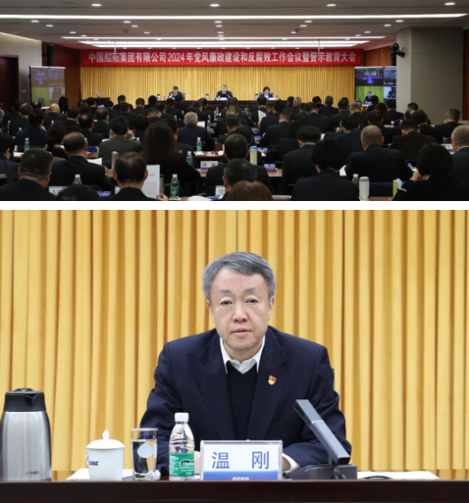 1月23日,中國船舶集團有限公司召開2024年黨風廉政建設和反腐敗工作會議暨警示教育大會。中國船舶集團黨組書記、董事長溫剛出席會議并講話。集團公司黨組成員、總會計師賈海英傳達了二十屆中央紀委三次全會精神,會議由集團公司黨組成員、副總經理盛紀綱主持。