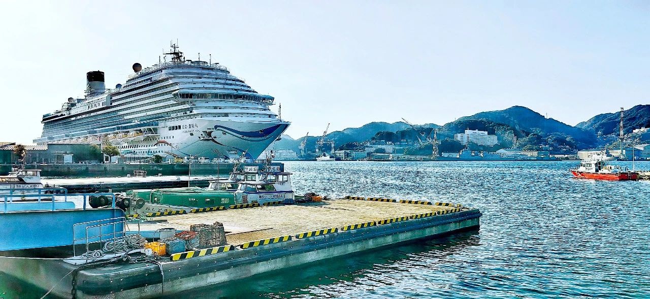 中國首艘國產(chǎn)大型郵輪“愛達·魔都號”與曾經(jīng)建造過郵輪的日本三菱重工船廠隔江相望。