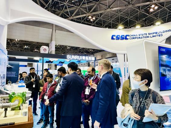 展會期間,集團(tuán)公司在展臺分別舉辦了青島雙瑞氨燃料供應(yīng)系統(tǒng)、滬東中華綠色低碳船型等多場領(lǐng)先產(chǎn)品技術(shù)專題發(fā)布推介會,在場外成功舉辦了集團(tuán)公司國際化品牌及產(chǎn)品技術(shù)推介會暨招待會,百余家日本當(dāng)?shù)丶皣H重要船東、船級社、設(shè)備廠商參加了集團(tuán)公司展會內(nèi)外推介活動。通過面對面直接宣介交流溝通,進(jìn)一步提升了集團(tuán)公司品牌的國際影響力,有力促進(jìn)了高質(zhì)量海外市場開發(fā)。此外,集團(tuán)公司組織相關(guān)單位,針對日本及周邊重點客戶廣泛開展商務(wù)拜訪,就當(dāng)前市場熱點與未來合作機(jī)遇進(jìn)行交流探討,既鞏固現(xiàn)有合作關(guān)系,又積極開發(fā)潛在客戶,著力深入拓展目標(biāo)市場。