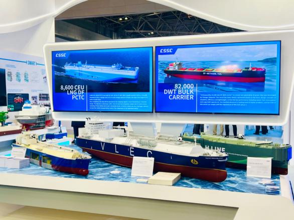 展會期間,國產(chǎn)大型郵輪、17.4萬立方米LNG船、8600車LNG雙燃料PCTC、9.9萬立方米VLEC、WinGD 9X92DF-2.0(-iCER)主機(jī)、船用LNG 供氣系統(tǒng)、船用碳捕捉系統(tǒng)、大口徑岸基智能裝卸系統(tǒng)等代表性產(chǎn)品悉數(shù)亮相,獲得海外市場高度關(guān)注。