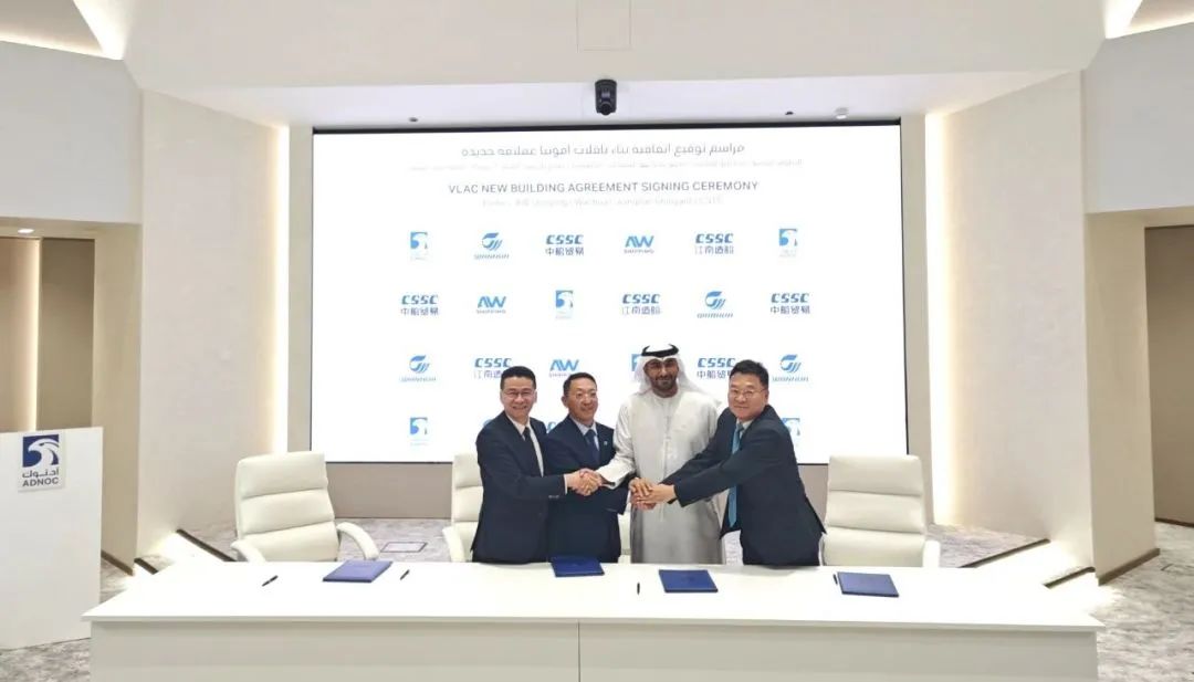 揭牌儀式后,江南造船與阿布扎比國家石油集團物流和服務公司(ADNOC L&S)和萬華化學集團的合資公司AW航運公司續(xù)簽了2艘93000立方米超大型液氨運輸船(VLAC) 。