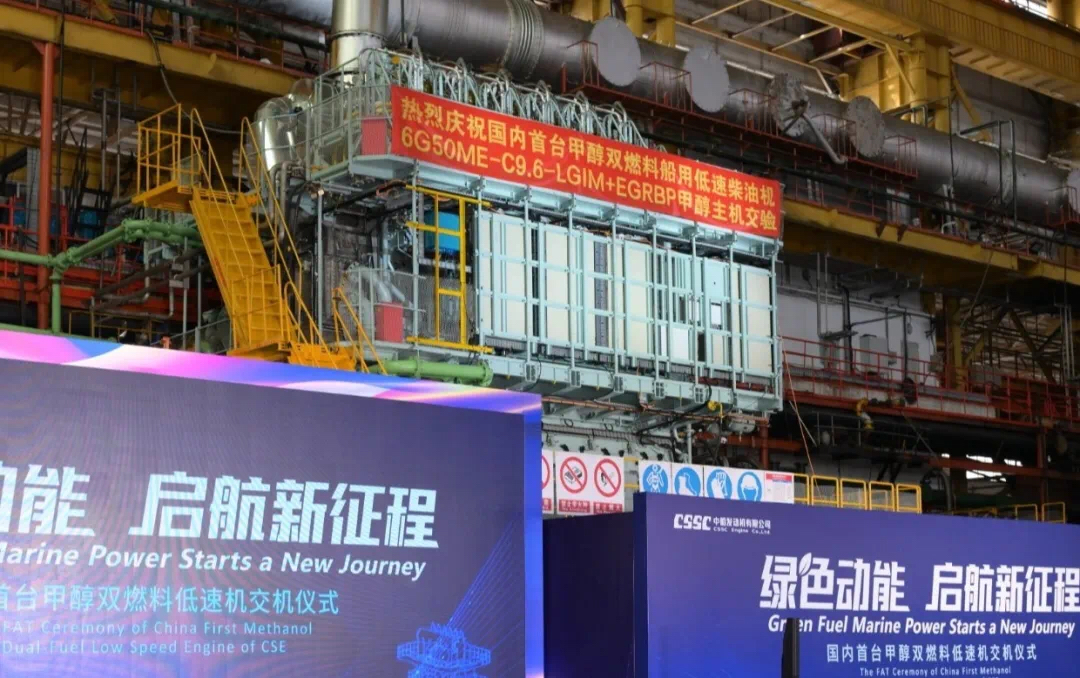 2024年5月18日,國內首臺甲醇雙燃料低速機6G50ME-C9.6-LGIM+EGRBP交機儀式在中船發動機成功舉行,標志著中船發動機成為國內最早具備甲醇雙燃料低速機持續交付能力的制造企業。該機將被安裝在廣船國際為HAFNIA船東建造的49500載重噸化學品/成品油船上。