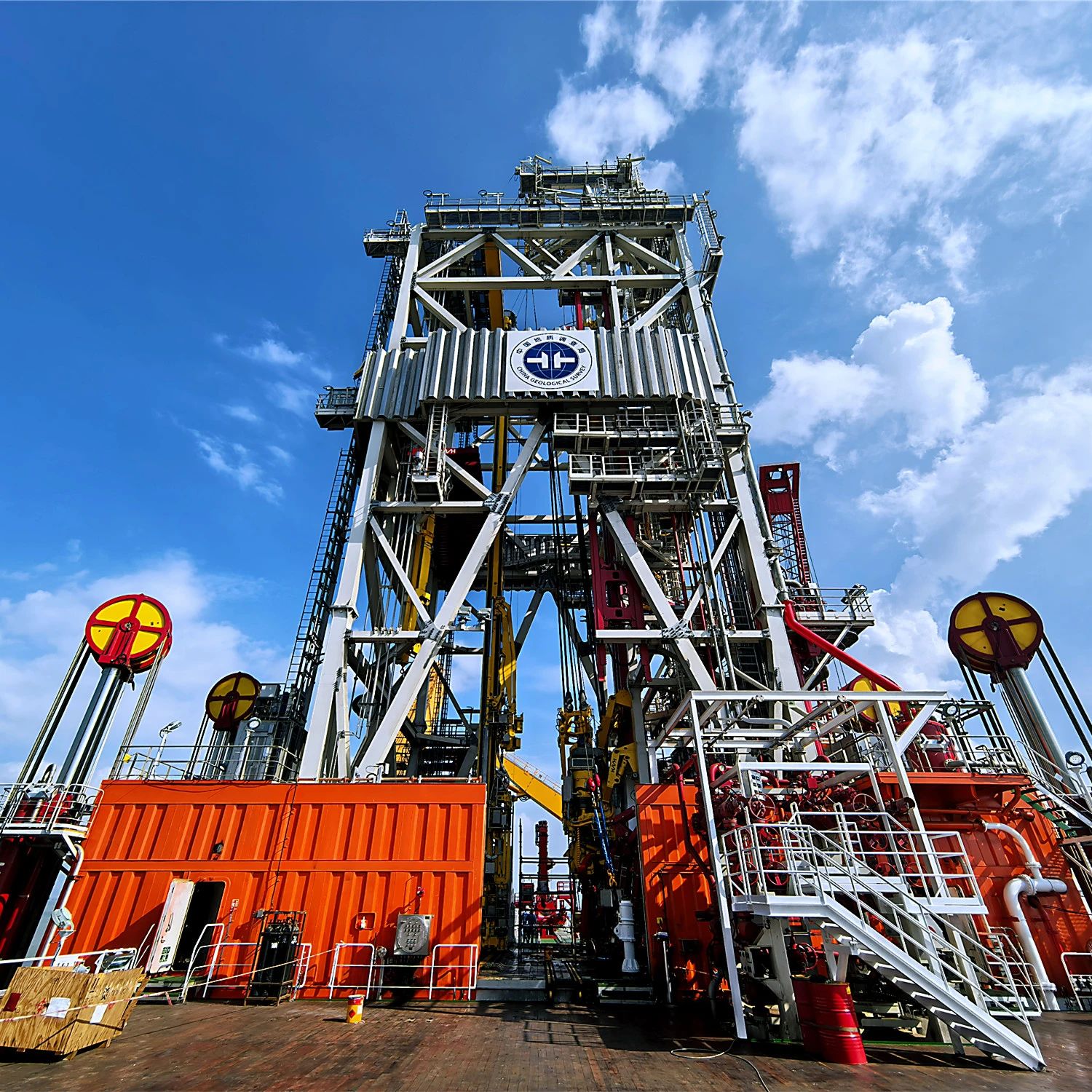 鉆采系統(tǒng)研發(fā)設(shè)計(jì)方面,鉆井系統(tǒng)研發(fā)團(tuán)隊(duì)提出并實(shí)現(xiàn)了連體雙月池作業(yè)系統(tǒng)、層級(jí)分布泥漿系統(tǒng)等多項(xiàng)創(chuàng)新技術(shù)方案。