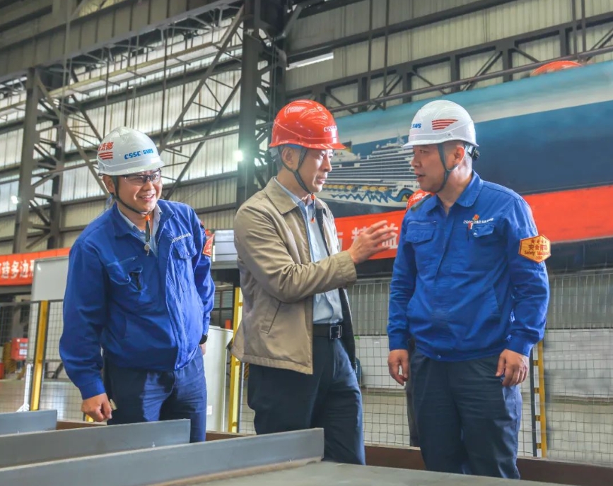 在相關二級管理單位,徐鵬調(diào)研了相關重點實驗室、車間和在建的國產(chǎn)大型郵輪“愛達·花城號”,與一線職工深入交流,并聽取了單位負責人關于經(jīng)營生產(chǎn)、公司治理、深化改革、隊伍建設、黨的建設等方面情況匯報。