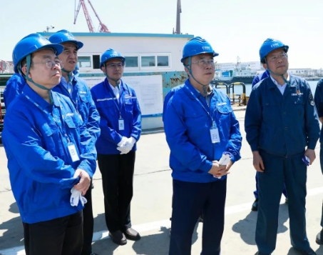 王國強深入船塢、碼頭、試驗現(xiàn)場等科研生產(chǎn)一線,察看了相關(guān)產(chǎn)品、重點建設(shè)項目,與一線員工就工作、生活情況親切交流,并聽取了相關(guān)單位發(fā)展情況、科技創(chuàng)新、安全生產(chǎn)等情況匯報。