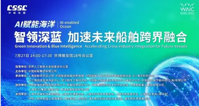 2025世界人工智能大會(WAIC2024) 將于7月26-29日在上海舉辦。27日下午,中國船舶集團有限公司將舉辦AI賦能海洋——智領深藍,加速未來船舶跨界融合論壇。