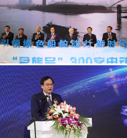 ????12月3日上午,中國船舶集團有限公司在第20屆中國國際海事會展上舉辦了“君旅號”300客位電動船產品發(fā)布會。中國船級社總裁莫鑒輝,中國船舶集團黨組副書記、總經理楊金成,黨組成員、副總經理馮永強出席發(fā)布會。