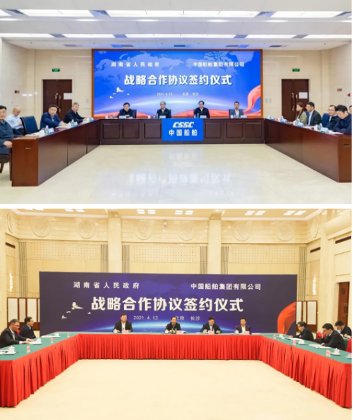 4月13日,中國(guó)船舶集團(tuán)有限公司與湖南省人民政府通過(guò)“云簽約”方式簽署戰(zhàn)略合作協(xié)議。中國(guó)船舶集團(tuán)黨組書記、董事長(zhǎng)雷凡培,黨組副書記、總經(jīng)理?xiàng)罱鸪桑h組成員、副總經(jīng)理盛紀(jì)綱,湖南省委書記、省人大常委會(huì)主任許達(dá)哲,省委常委、省委秘書長(zhǎng)張劍飛,省委常委、省國(guó)資委黨委書記姚來(lái)英出席簽約儀式。中國(guó)船舶集團(tuán)黨組成員、副總經(jīng)理錢建平,湖南省人民政府副省長(zhǎng)陳飛分別代表雙方在協(xié)議上簽字。簽約前,雙方圍繞共同服務(wù)國(guó)家戰(zhàn)略、深入推進(jìn)雙方戰(zhàn)略合作進(jìn)行了交流。