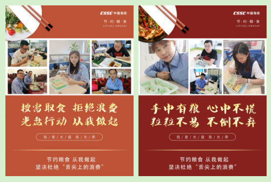 連日來,中國船舶集團多家成員單位積極踐行習近平總書記對制止餐飲浪費行為的重要指示精神,進一步加強宣傳教育,培養節約習慣。首先刊載有特色的宣傳海報、條幅,