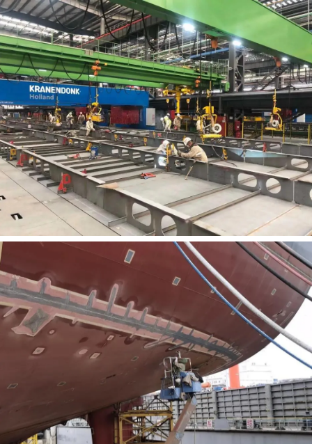 安環(huán)保衛(wèi)部安保消員工堅(jiān)守崗位,保障大型郵輪作業(yè)安全;集配部碼頭鋼板抓緊卸貨,全力保障生產(chǎn);制造二部400余名員工投入大型郵輪薄板分段建造;涂裝部800余名員工對大型郵輪/民船關(guān)鍵項(xiàng)目進(jìn)行涂裝;搭載部1300余名員工堅(jiān)守崗位保證船塢節(jié)點(diǎn);總裝一部400余人圍繞止鏈器/艙口圍導(dǎo)軌安裝等開展生產(chǎn),總裝二部對大型郵輪總段扣壓管穿艙件進(jìn)行焊接;生產(chǎn)保障部開展大型郵輪臨時電力系統(tǒng)新式電箱改造。