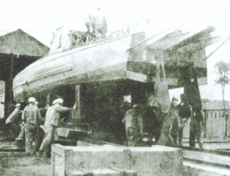 △我國第一艘自行設(shè)計建造的淺水炮艇“海東雄”號(蚊子船)