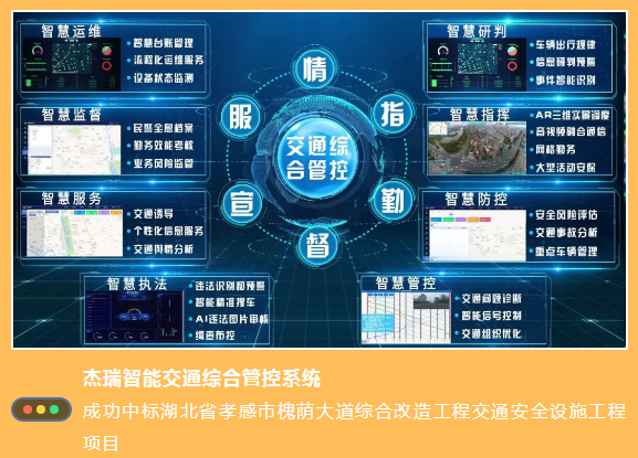 中國船舶集團旗下七一六所 研發(fā)的杰瑞智能交通綜合管控系統(tǒng)、智能交通信號控制系統(tǒng)和杰瑞信息系統(tǒng) 受到業(yè)主青睞!