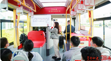 紅色巴士從浦東開發(fā)陳列館出發(fā),講解員帶領(lǐng)“乘客”一路學(xué)習(xí)小陸家嘴地標(biāo)背后的故事,感受國(guó)際金融中心的崛起,回顧浦東從阡陌農(nóng)田到高樓林立30年的發(fā)展歷程。窗內(nèi)窗外,歷史故事與魔都?xì)庀蠼豢棧呅熊嚒⑦厖⒂^、邊講課、邊互動(dòng)的學(xué)習(xí)形式,讓“四史”學(xué)習(xí)的過程更具代入感。本次“四史”學(xué)習(xí)不僅激發(fā)了青年的拼搏意志,增強(qiáng)了對(duì)城市發(fā)展及企業(yè)改革的認(rèn)同感,更堅(jiān)定了崗位立功的理想信念,引領(lǐng)青年不懈努力,為企業(yè)高質(zhì)量發(fā)展匯聚奮進(jìn)力量。