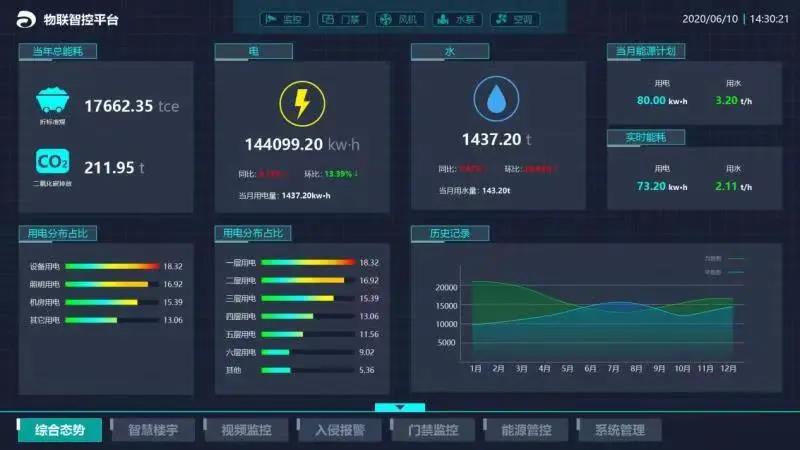 該系統以“物聯感知、大數據分析、三維虛實映射、數據可視化”等新一代ICT技術為支撐,實施“信息感知一張網、可視管控一平臺、用能一張圖、數據服務一中心、安全運維兩體系”五個重點建設工程,構建包括統一圖形化的操作界面,統一報警管理,統一歷史數據管理,統一用戶權限管理的架構。系統通過物聯感知設備,對辦公區域主要耗能設備進行實時在線感知監控、能耗數據分析,實現公司用能態勢一張圖、違規用能三維可視化快速定點識別。