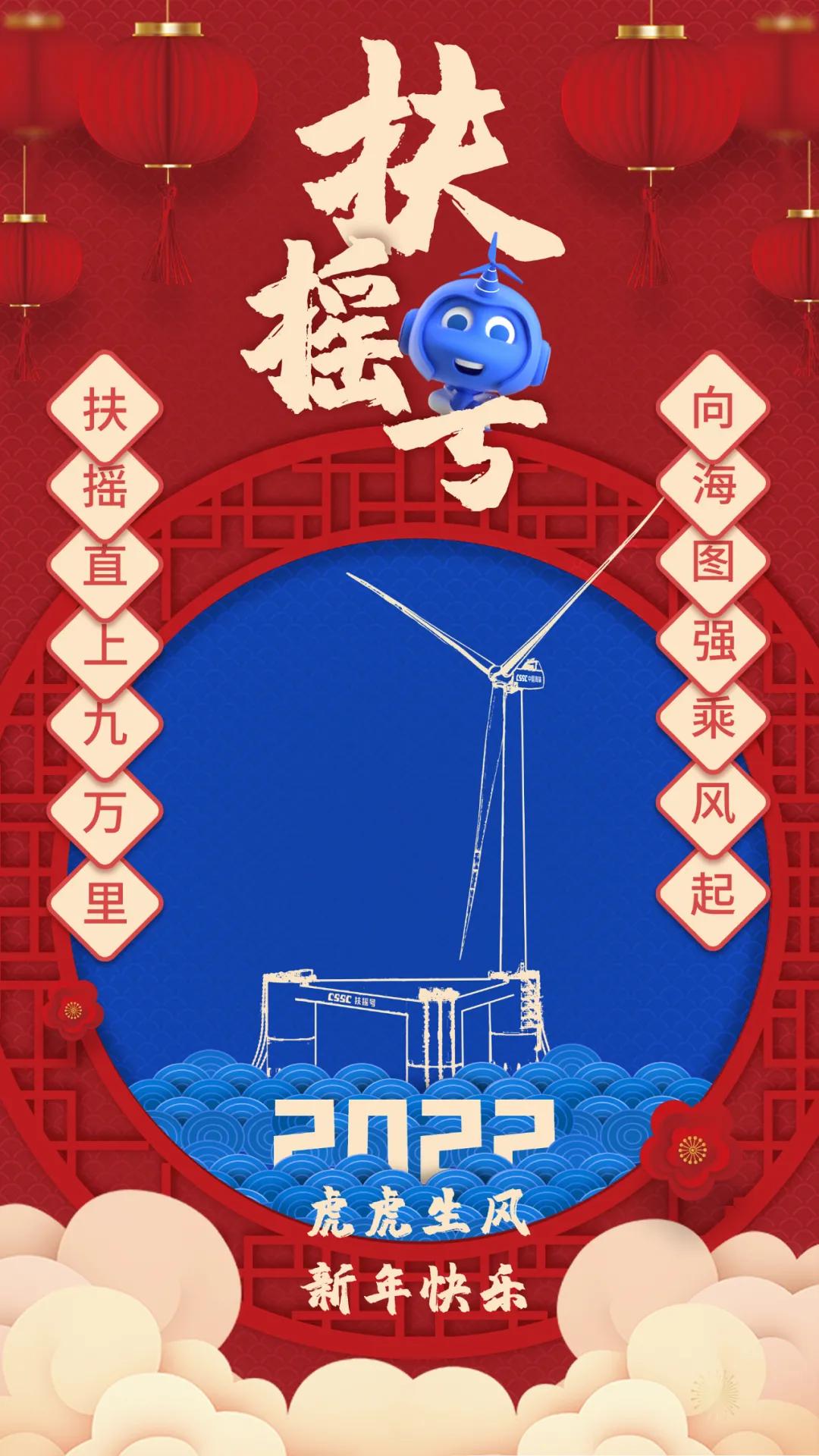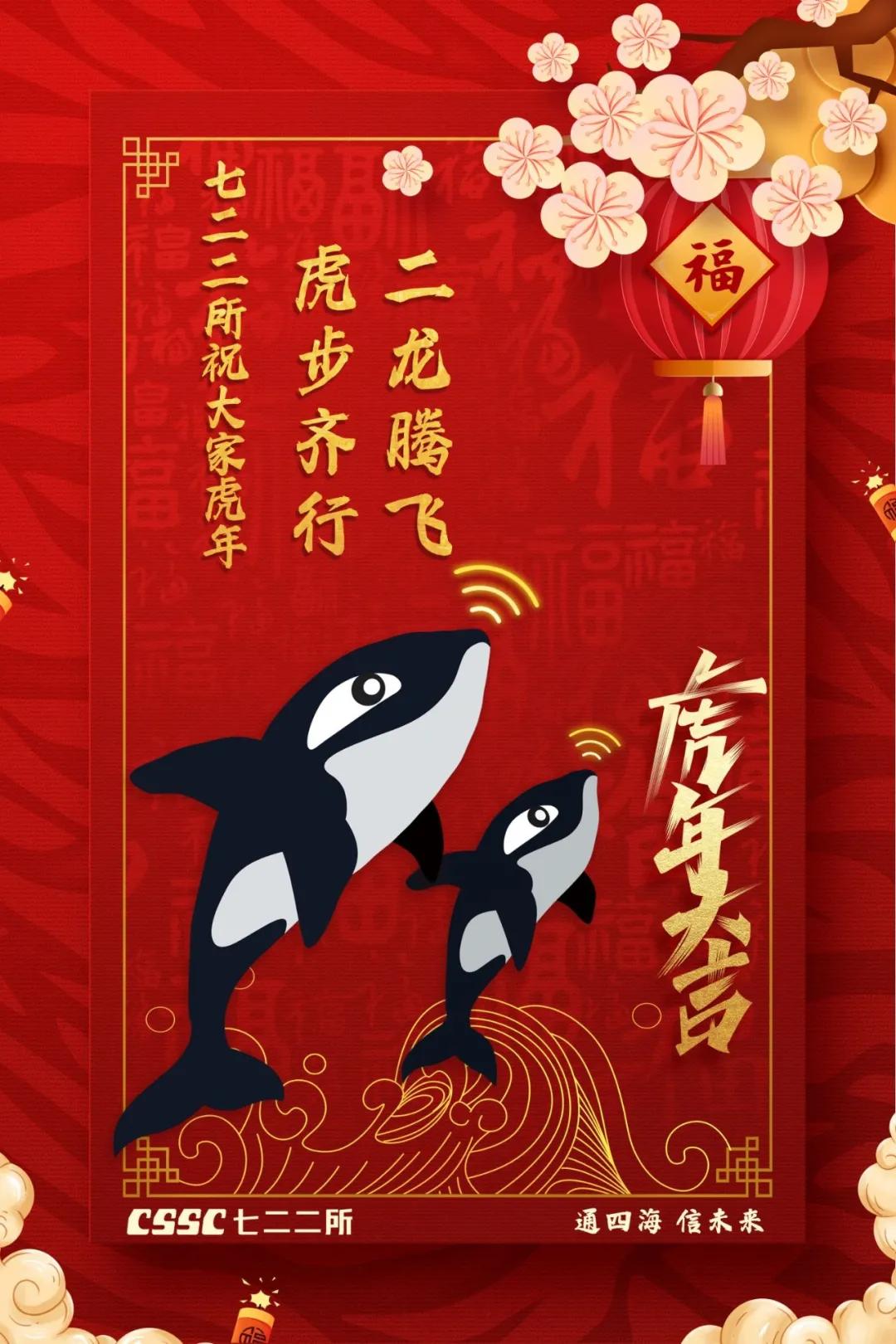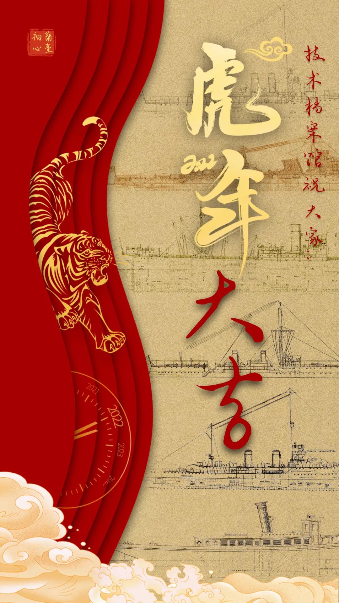 海報采用國潮畫風,中間部分“江小南”穿著新衣舉著虎頭,寓意新的一年中國船舶人虎虎生威,上面部分以重要產(chǎn)品和廠區(qū)設(shè)備為主,詮釋江南造船建造國之重器的初心和使命,同時輔以鞭炮、煙花、燈籠等新年元素,使海報充滿喜慶祥和的新年氛圍。