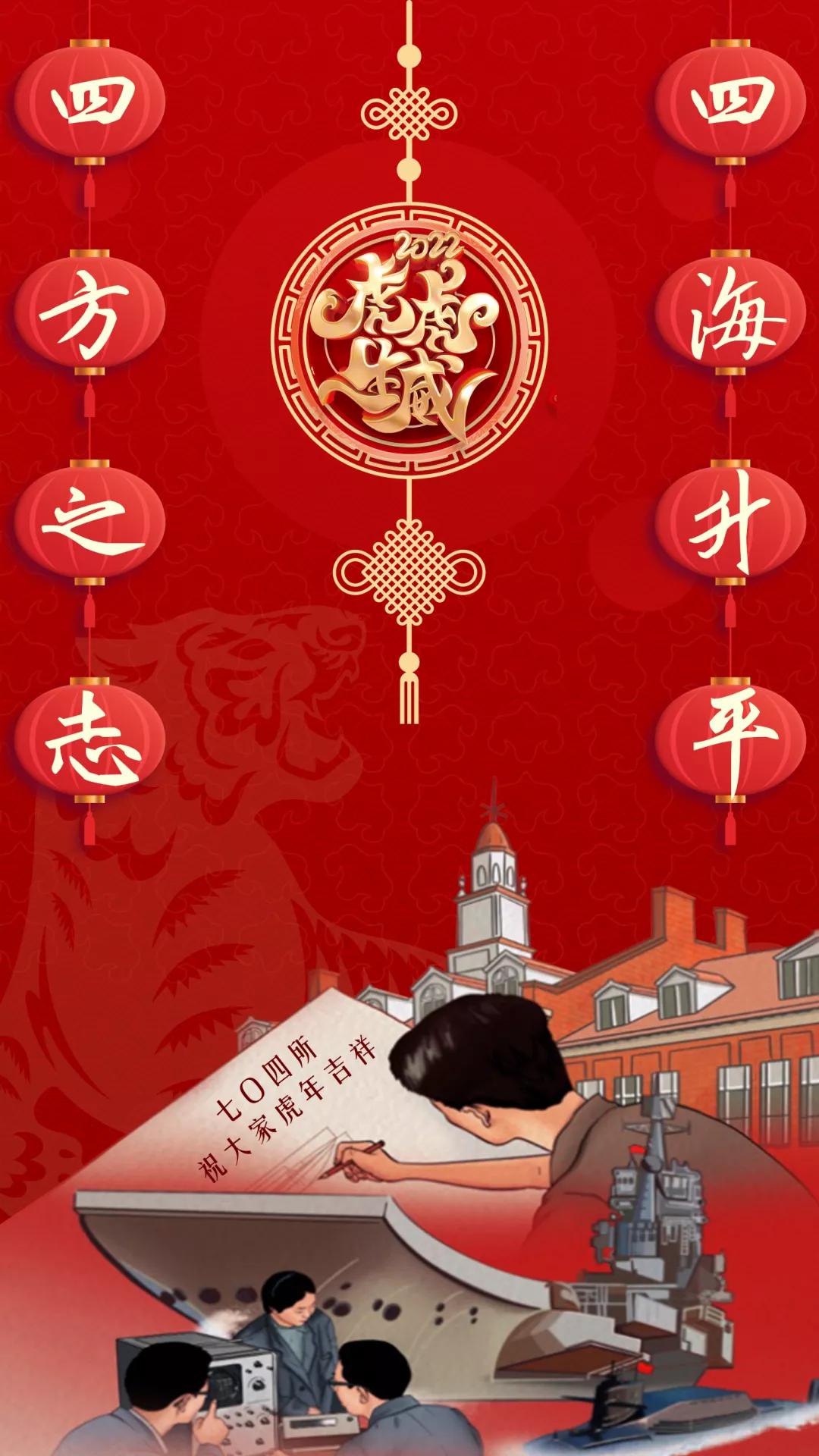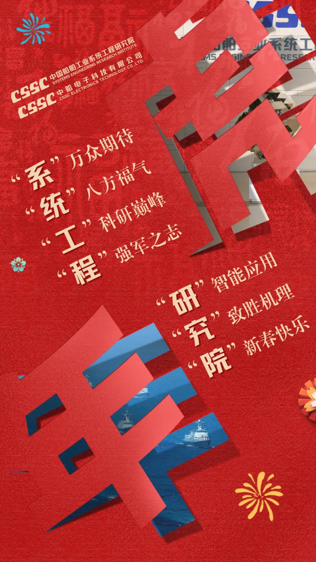 以中國紅為主色調(diào),運用傳統(tǒng)剪紙手法結(jié)合鏤空設(shè)計,寓意揭開虎年新篇章,映入眼簾的艦艇乘風破浪、浩浩蕩蕩,傳遞系統(tǒng)工程研究院/中船電科建設(shè)強大海軍的信心和決心!
