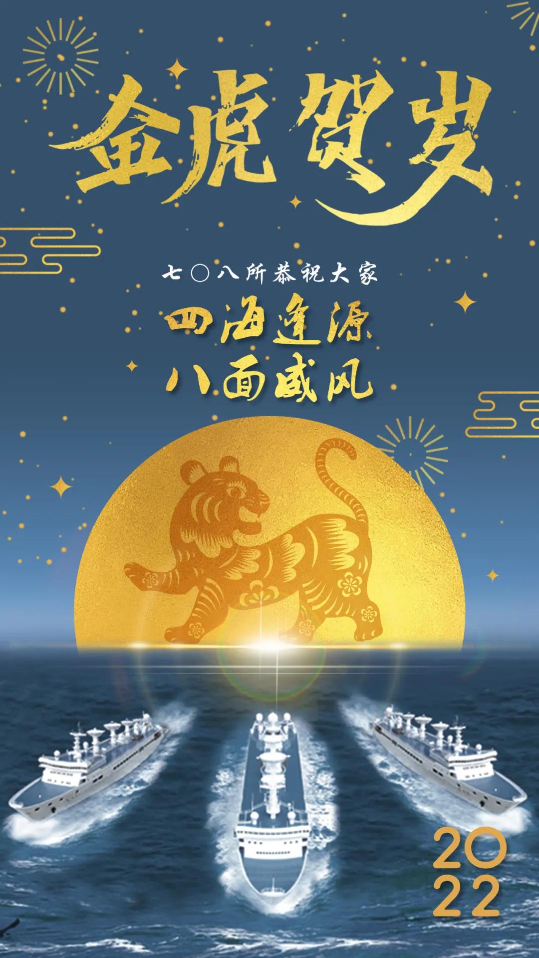 海報以七〇八所自主研發(fā)設(shè)計的遠望號船隊、金虎、星空、月亮為元素創(chuàng)作,彰顯祖國浩瀚海疆、無垠星空的安寧祥和。四十余年來,遠望號船隊劈波斬浪,守護著祖國的花好月圓。從遠望一號至遠望七號,凝結(jié)著幾代中國船舶人的智慧和汗水,堅守一方“浮動國土”。