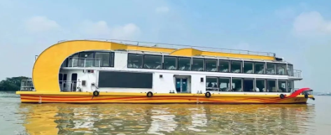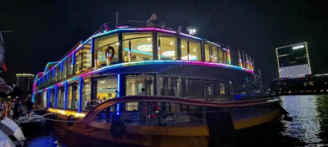“廣游19”配置3015kWh純鋰電池驅(qū)動,Z形全回轉(zhuǎn)舵槳推進,經(jīng)濟航速下可滿足7小時續(xù)航要求。船體上建采用大面積玻璃幕墻,具有開闊的觀光視野,可360度觀賞珠江日景夜景,可提供江景游覽、娛樂餐飲、會議招待、婚禮、音樂舞會、年會等綜合服務(wù)。