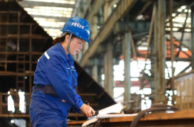 當首制船交付時,烏曉紅的團隊贏得了來自荷蘭的項目首席貨艙專家的點名表揚。此后,她又砥礪奮發(fā),負責后續(xù)9艘系列化學品船的質(zhì)量工作,因為品質(zhì)如金,因為服務細致,因為信任有加,后續(xù)船的各項報驗工作始終在“快車道”上行進,滬東中華實現(xiàn)了一艘比一艘好,一艘比一艘快的建造目標。