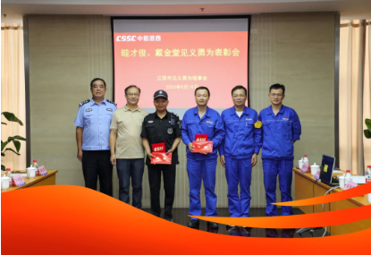 9月19日,江陰市見義勇為基金會專程來到中國船舶集團旗下中船澄西,對生產(chǎn)管理部眭才俊進行表彰。