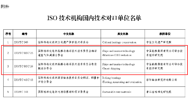 由中船綜合院承擔2個國際標準化組織(ISO)技術機構國內技術對口單位,分別是: