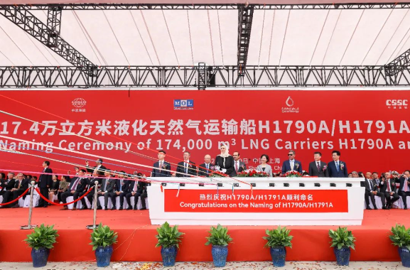 9月10日,中國船舶集團(tuán)旗下滬東中華聯(lián)合中船貿(mào)易與卡塔爾能源液化天然氣公司,為“卡塔爾百船建造計劃——卡塔爾北部氣田擴(kuò)能船舶購置項目”17.4萬立方米大型LNG運(yùn)輸船首船“雷克斯·蒂勒森”號、2號船“烏姆·古瓦伊琳娜”號舉行命名儀式。卡塔爾能源事務(wù)國務(wù)大臣、卡塔爾能源總裁兼首席執(zhí)行官薩阿德·謝里達(dá)·阿爾卡比,中國船舶集團(tuán)黨組成員、總會計師賈海英等出席命名儀式。