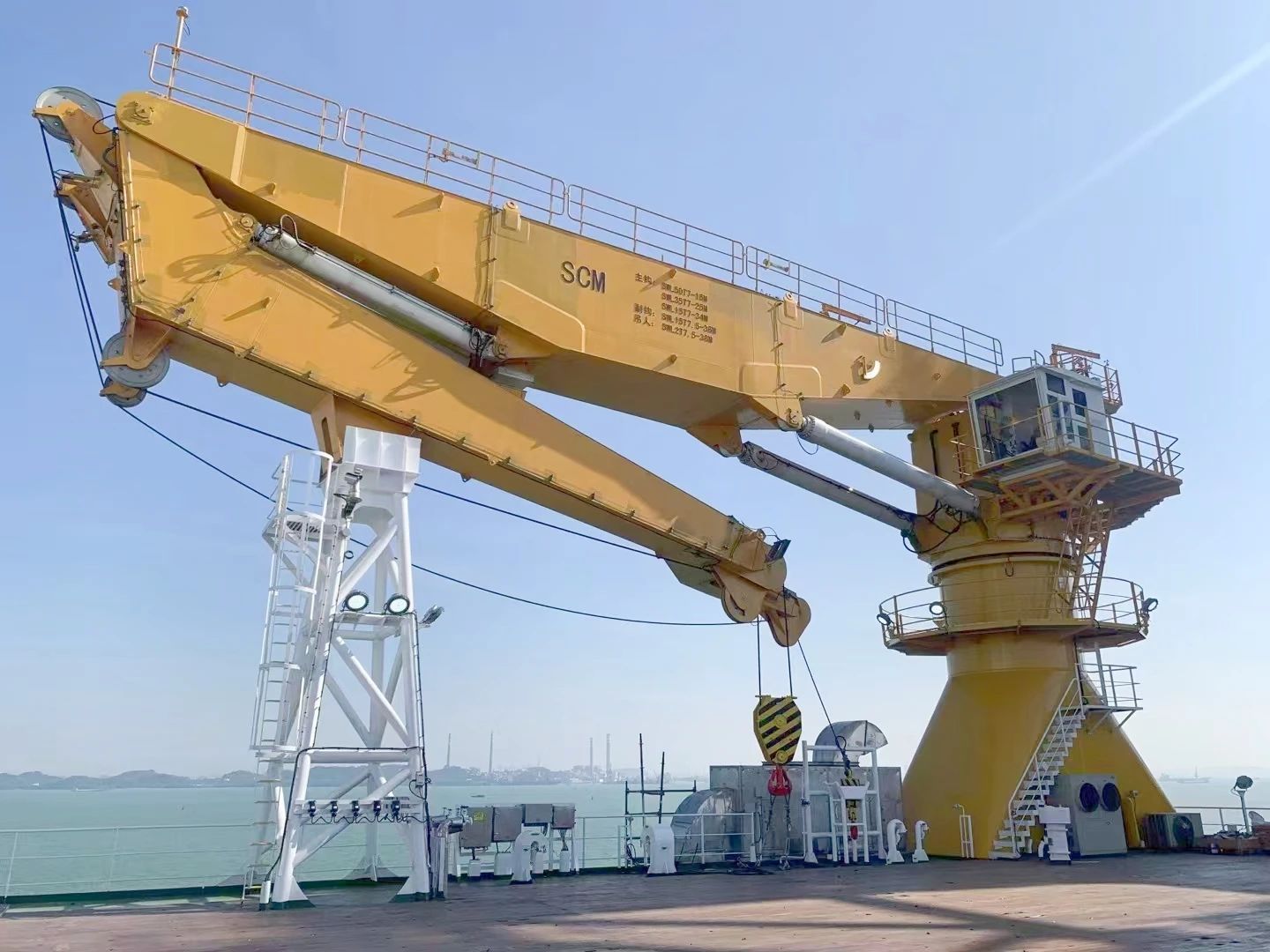 該起重機相較于傳統海工起重機大有不同,它對標國際一流海工起重裝備,有更為嚴格的行業標準及規范,更多元的功能需求。該起重機在現有的海工吊基礎上增加了主動安全防護(AOPS)、智能化安全防護、油缸泄漏檢測等多種功能,這些功能均是華南船機首次嘗試設計,其創新性與難度不言而喻。