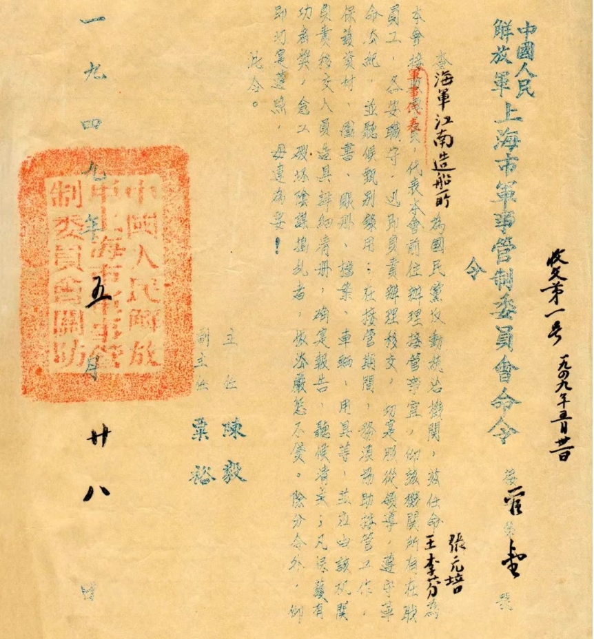 江南之于國家的戰(zhàn)略意義,周恩來曾這樣說過:“江南造船所是中國乃至亞洲最大的軍工企業(yè),要爭取在解放軍進滬時,安全、完整地交給人民。”1949年5月27日,上海解放。第二天上海市軍管會主任陳毅、副主任粟裕簽發(fā)第一號令,宣布接管海軍江南造船所。華東海軍司令員張愛萍來到江南造船所和工人們一起投入搶修造船設(shè)施的勞動中,江南造船在廢墟上獲得新生。