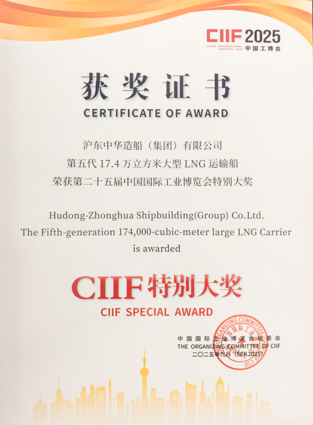 近日,中國船舶集團(tuán)有限公司旗下滬東中華自主研發(fā)的第五代“長恒系列”17.4萬立方米雙燃料動(dòng)力低速推進(jìn)LNG船,從數(shù)百個(gè)參賽項(xiàng)目中脫穎而出,摘下第二十五屆中國國際工業(yè)博覽會(huì)唯一的CIIF特別大獎(jiǎng)。