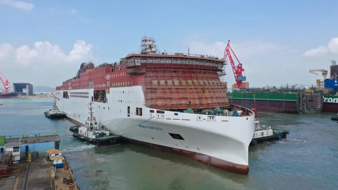 近日,廣船國際為意大利Onorato航運集團旗下Moby Line航運公司建造的2500客/3800米車道豪華客滾船首制船實現出塢,建成交付后將成為全球最大的豪華客滾船。