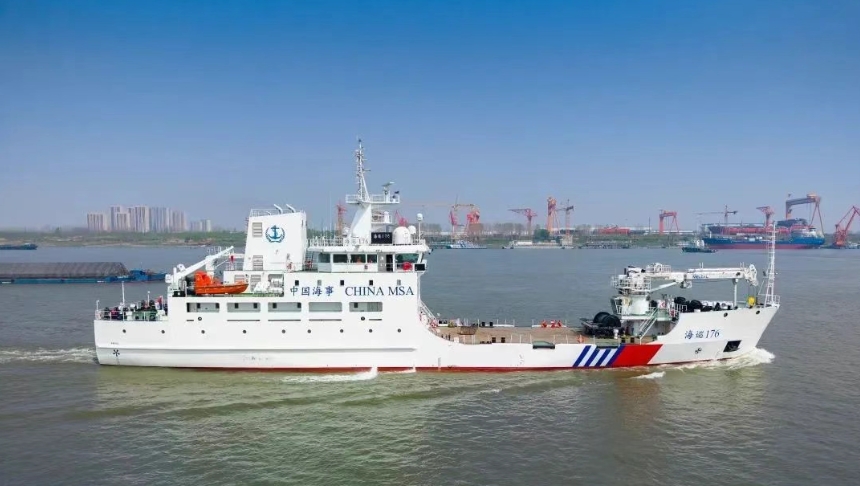“海巡176”滿載排水量約為2450噸,續航力5000海里,采用全電力驅動,主要負責南海海區各港口及航道的航標布設、起吊、維護以及應急搜救等任務,同時兼具海上溢油處置、海事應急搜救、值守人員交通、物資補給、無線電導航信號監測等多重功能。