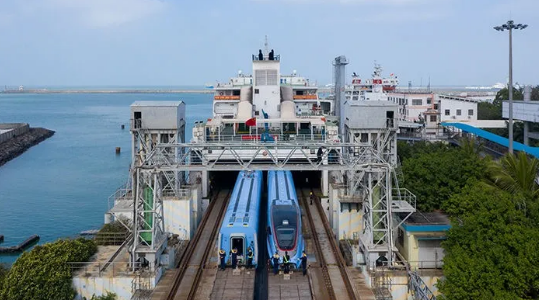 搭載2組復興號動車組過海的是“粵海鐵1號”“粵海鐵2號”火車渡船。這2艘船均由中國船舶集團旗下七〇八所設計、江南造船建造,其中,“粵海鐵1號”是我國第一艘自行設計、自行建造的跨海火車渡船,該船于2003年1月投入運營,結(jié)束了海南島與外省不通火車的歷史。