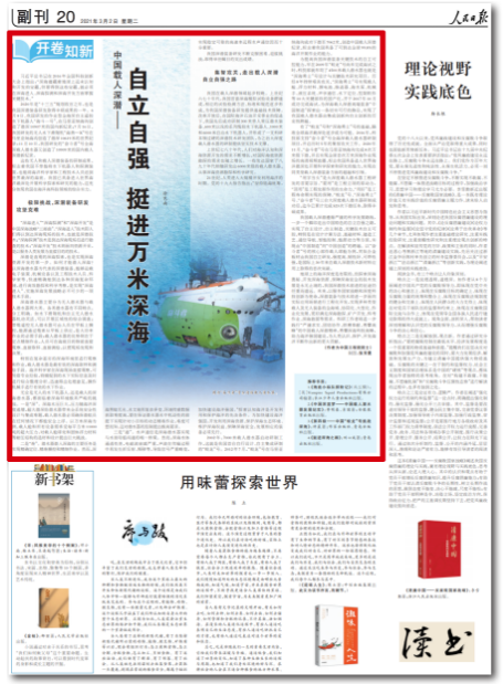 3月2日,人民日報 “開卷知新” 專欄刊發“蛟龍號”總設計師中國工程院院士中國船舶集團七〇二所研究員徐芑南文章《中國載人深潛——自立自強 挺進萬米深?!贰?/p>