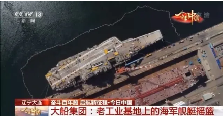 4年前的2017年,我(總臺記者季熠非)就是在這里,同樣通過電視直播,有幸記錄和見證了首艘國產(chǎn)航空母艦,也就是現(xiàn)在的海軍山東艦的第一次公開亮相,而我國的第一艘航母遼寧艦也同樣來自于大船集團(tuán)。可以說,這里真是名副其實的海軍艦艇搖籃。