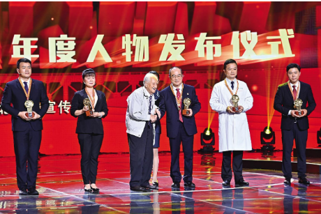 當(dāng)主持人念出“給‘人民英雄’張定宇頒獎(jiǎng)的是‘共和國勛章’獲得者黃旭華”時(shí),臺下爆發(fā)出熱烈的掌聲。