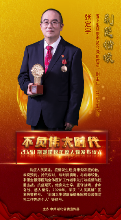 2020年8月11日,授予在抗擊新冠肺炎疫情斗爭中作出杰出貢獻(xiàn)的人士國家勛章和國家榮譽(yù)稱號, 張定宇被授予“人民英雄”國家榮譽(yù)稱號。