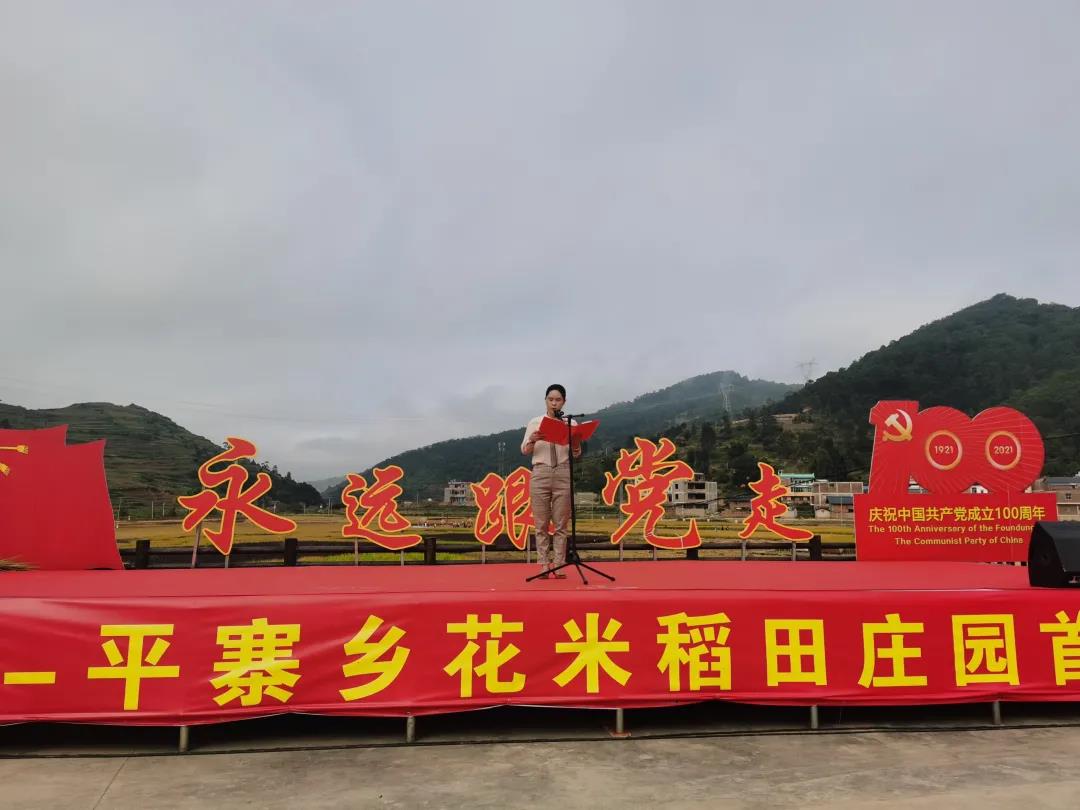 以節(jié)聚勢(shì),以節(jié)聚產(chǎn),以節(jié)聚人,平寨鄉(xiāng)壯族百姓以獨(dú)特的方式,慶祝祖國(guó)生日,分享豐收喜悅,總結(jié)鞏固脫貧攻堅(jiān)成果與鄉(xiāng)村振興有效銜接經(jīng)驗(yàn),探索綠色發(fā)展、質(zhì)量發(fā)展新思路,實(shí)踐對(duì)口幫扶、內(nèi)生動(dòng)力資源增效新方法,構(gòu)建產(chǎn)業(yè)發(fā)展、農(nóng)旅融合鄉(xiāng)村振興新路徑,譜寫平寨發(fā)展新篇章。平寨鄉(xiāng)黨委書記陸華麗在開幕式致辭中指出,舉行花米稻田莊園首屆新米節(jié),是平寨鄉(xiāng)“以節(jié)聚勢(shì),以節(jié)聚人,以節(jié)聚產(chǎn)”的重要舉措。近年來,平寨鄉(xiāng)堅(jiān)持黨建引領(lǐng),務(wù)實(shí)創(chuàng)新的工作作風(fēng),各項(xiàng)事業(yè)蓬勃發(fā)展。脫貧攻堅(jiān)勇創(chuàng)佳績(jī),人居環(huán)境不斷改善,產(chǎn)業(yè)生態(tài)綠色發(fā)展,文化事業(yè)生機(jī)勃勃,民族團(tuán)結(jié)碩果累累,為鄉(xiāng)村振興戰(zhàn)略的實(shí)施打下了良好的基礎(chǔ)。