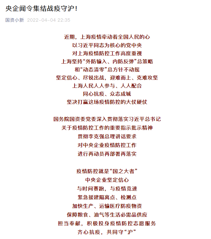 央企聞令集結戰疫守滬