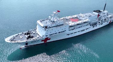 “絲路方舟”號醫(yī)院船羅吉星介紹:“作為一艘醫(yī)院船,它具備靈活的機動能力,能夠在災害發(fā)生第一時間迅速抵達災害地區(qū),提供醫(yī)療援助服務,還具備多種換乘能力和轉(zhuǎn)移手段,在不具備靠泊條件的災害地區(qū)可以通過直升機和救護艇,將醫(yī)護人員和醫(yī)療物資轉(zhuǎn)運上岸,或者通過同樣的方式將我們傷病員轉(zhuǎn)運至醫(yī)院船進行醫(yī)療救治。
